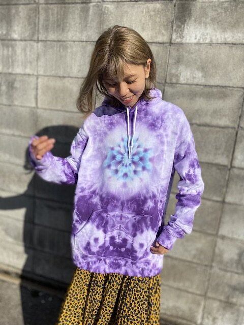 タイダイ染め Tie-dye プルオーバー フーディー 曼荼羅 メンズXL ムラ染め パープル HD13-29