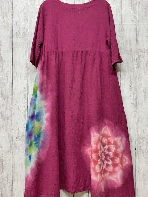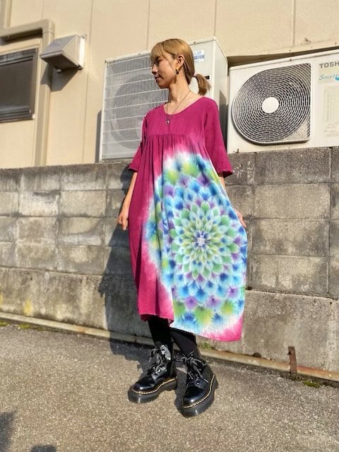 タイダイ染め Tie-dye ロングワンピースバーガンディに美しい宝石のような碧碧色の大曼荼羅 HD13-44