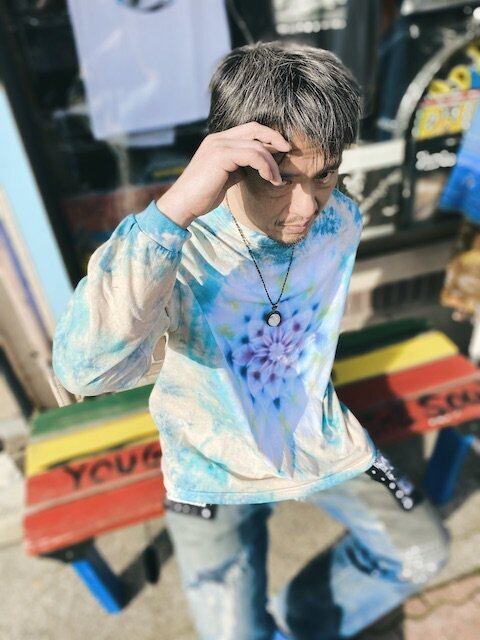 タイダイ染め Tie-dye ビッグシルエット 長袖Tシャツ 曼荼羅 メンズ XLサイズ HD13-39