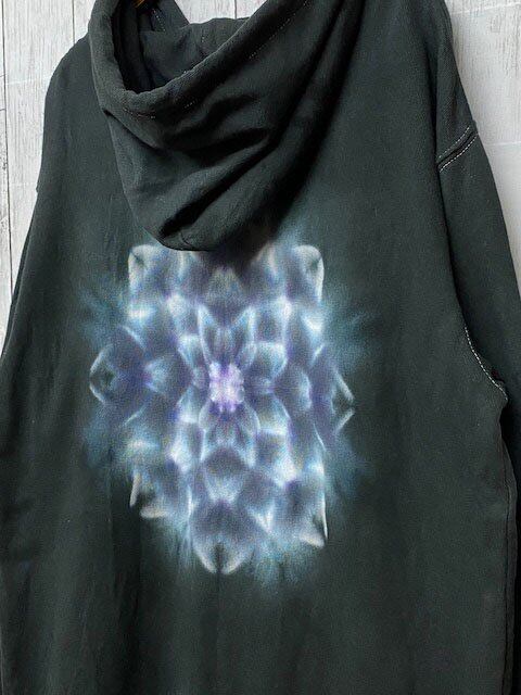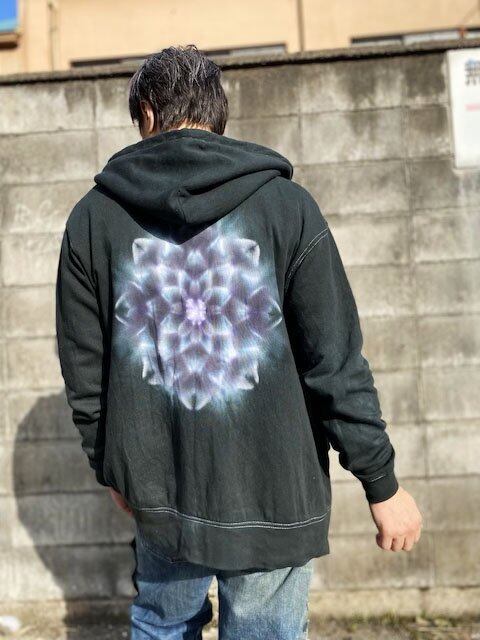 タイダイ染め Tie-dye ジップアップ フーディー ブラック 曼荼羅 メンズ XLサイズ HD13-50