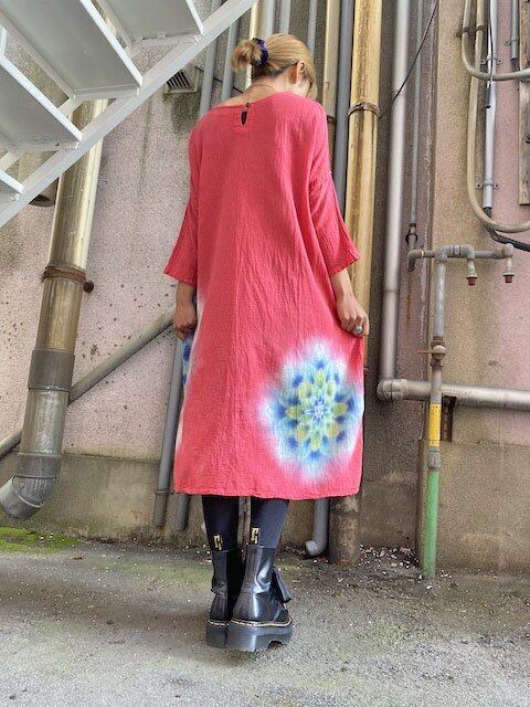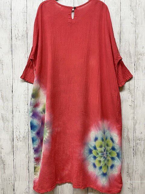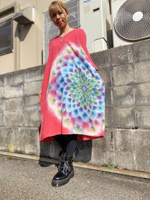 タイダイ染め Tie-dye ワンピース ゆったりデザイン 幻想的な大曼荼羅 レッド HD13-54