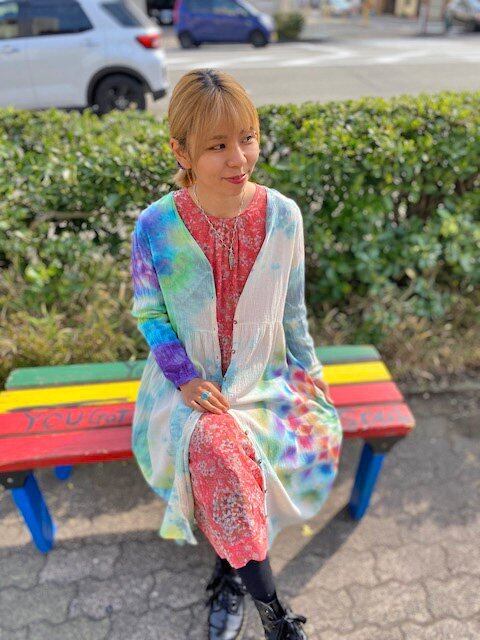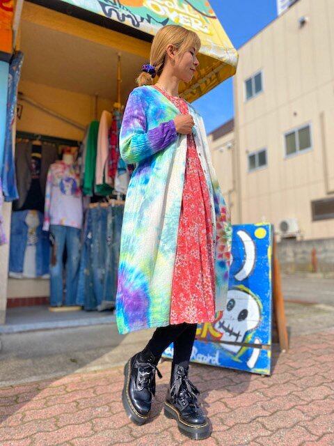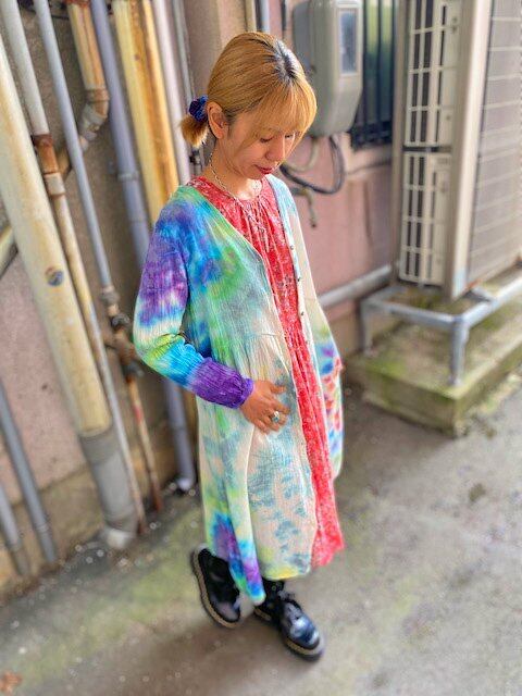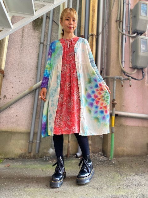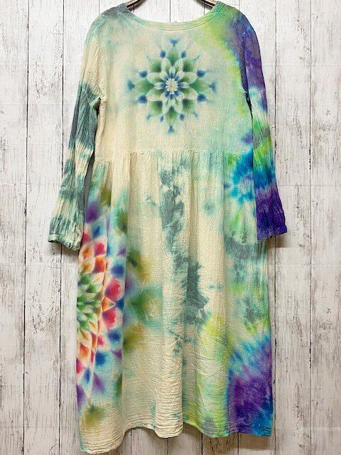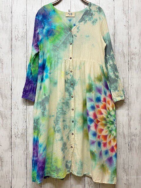 タイダイ染め Tie-dye 前開き ロングワンピース 風を纏う湖面カラーに幻想的な大曼荼羅 HD13-56