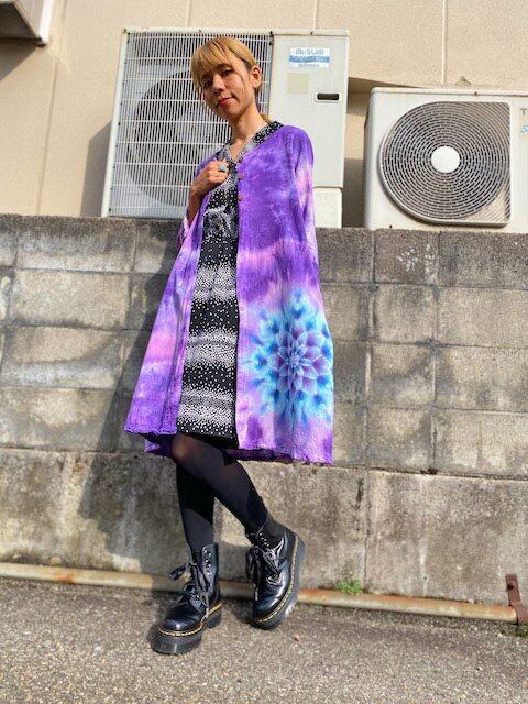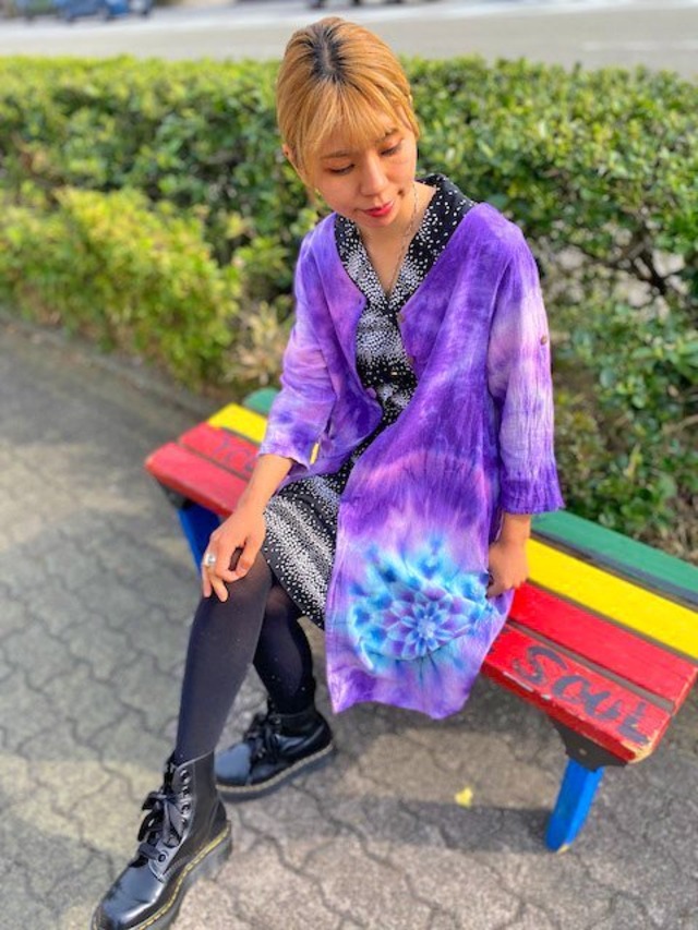タイダイ染め Tie-dye 前開き チュニックカーデ パープル系ムラ染め 曼荼羅 絞り染め HD13-57