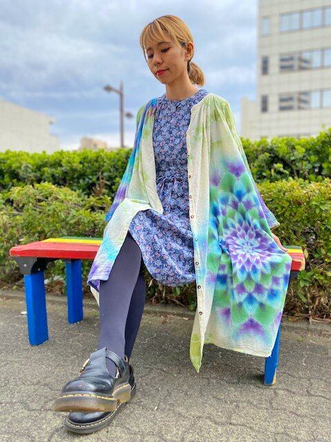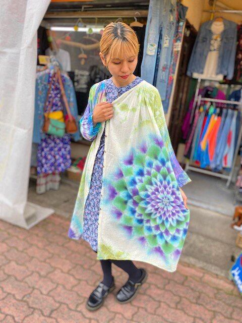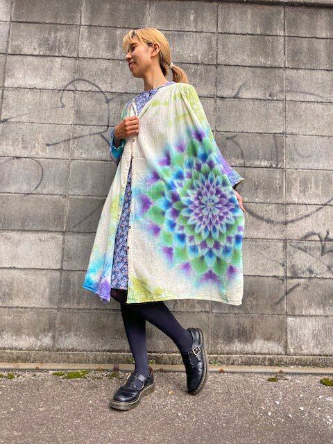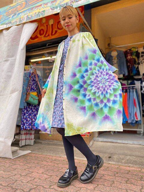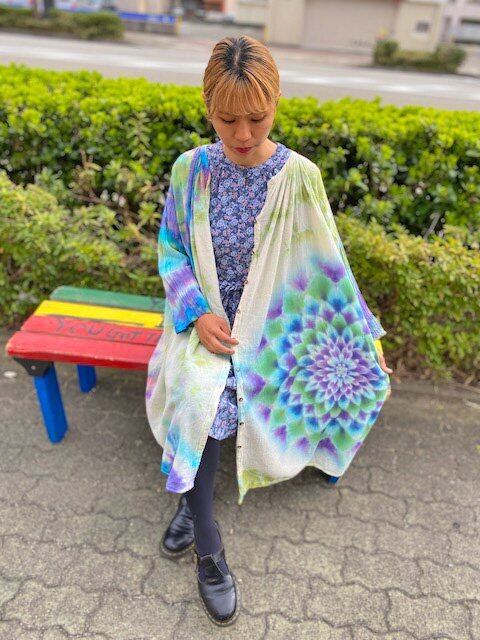 タイダイ染め Tie-dye ロングワンピース 空や水を映す湖面カラーに幻想的な大曼荼羅 HD13-59