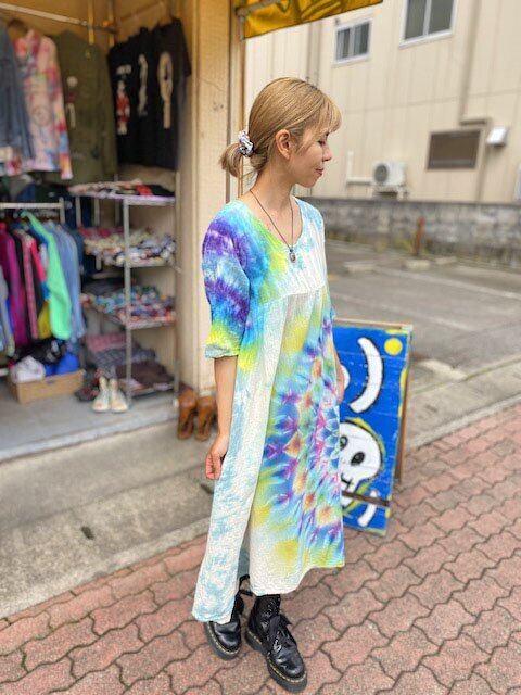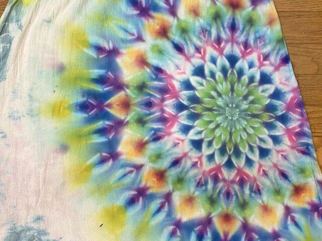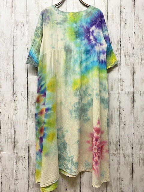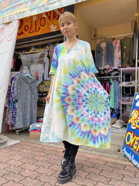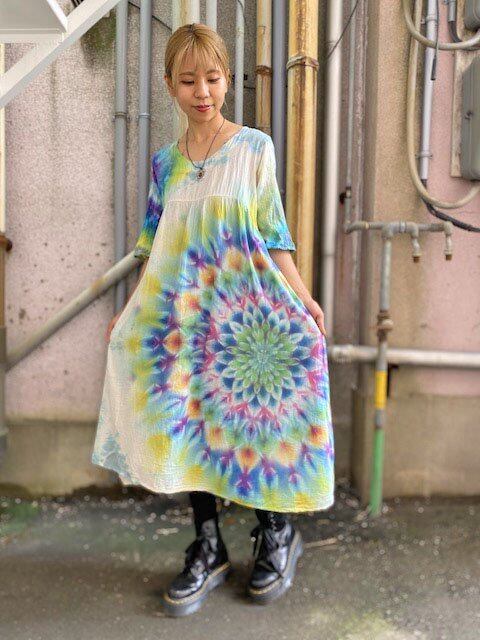 タイダイ染め Tie-dye ロングワンピース 空や水を映す湖面カラーに彩やかに羽を広げる孔雀大曼荼羅 HD13-81