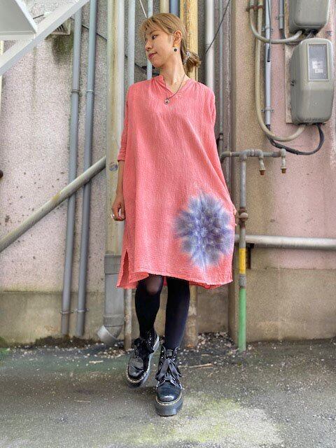 タイダイ染め Tie-dye 七分袖 チュニック 優しい紅色に幻想的な曼荼羅模様 HD13-82