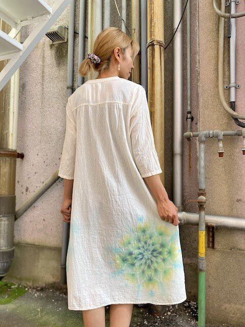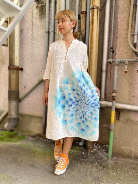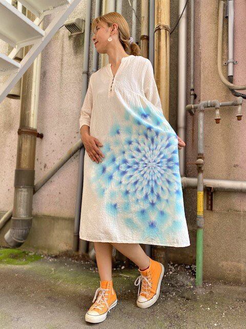 タイダイ染め Tie-dye チュニック ワンピース 透明な水色の大曼荼羅 ホワイトビューティ HD13-91