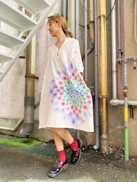 タイダイ染め Tie-dye チュニック ワンピース 淡く優しい幻想的な大曼荼羅 ほんのり微かな桜色 HD13-96