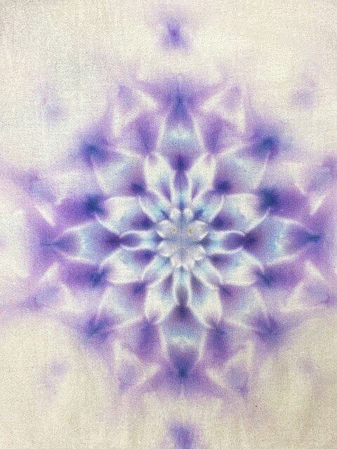 染めならではの透明感を持った、優しい花が広がる波紋のような大曼荼羅。