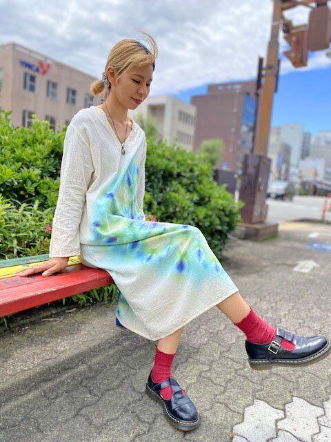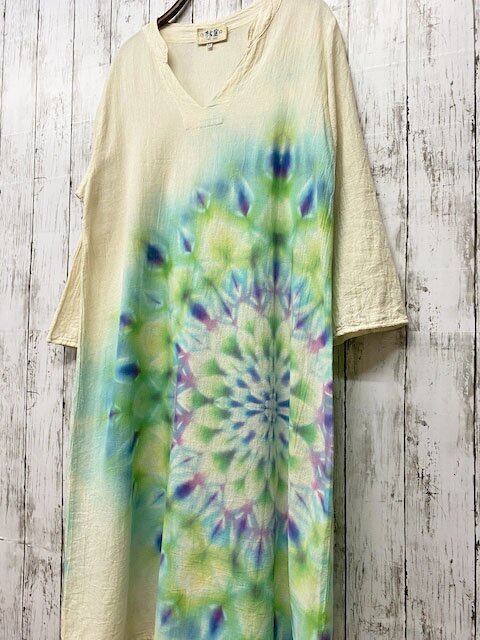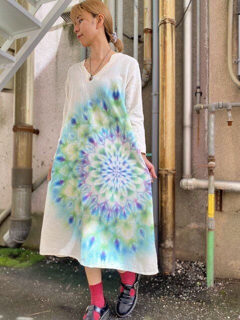 タイダイ染め Tie-dye チワンピース 翡翠色の孔雀大曼荼羅 ホワイトビューティ HD13-97