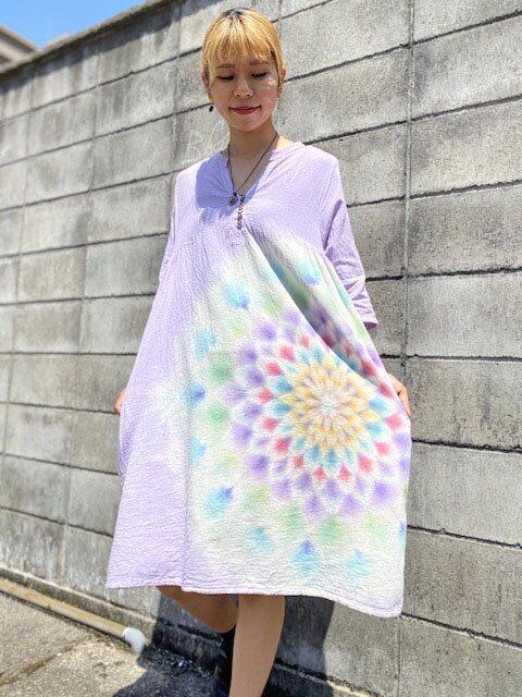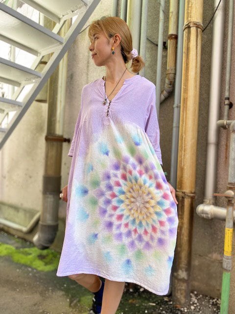 タイダイ染め Tie-dye チュニック ワンピース 淡く優しいラベンダーに華やかな大曼荼羅 HD14-02
