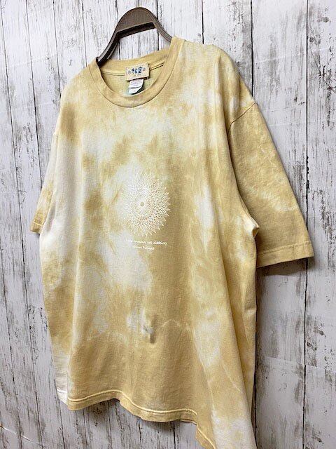 タイダイ染め Tie-dye ビッグシルエット Tシャツ メンズLサイズ 曼荼羅プリント ベージュ ムラ染め HD14-03