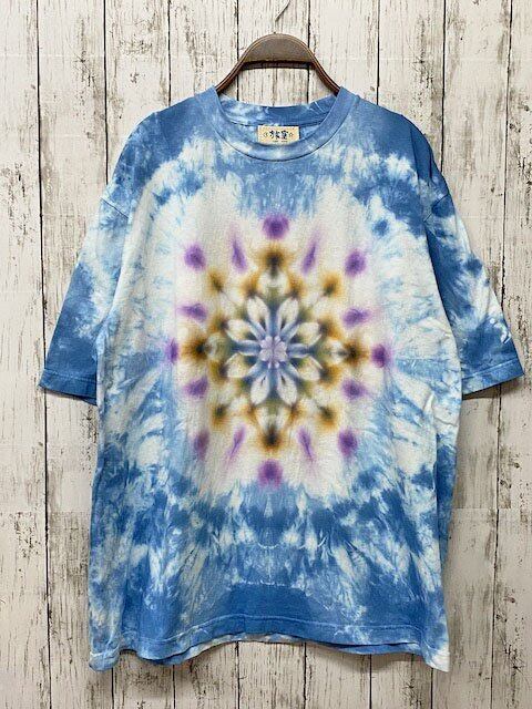 タイダイ染め Tie-dye ビッグシルエット Tシャツ メンズ Lサイズ 曼荼羅 ムラ染め ブルー HD14-13