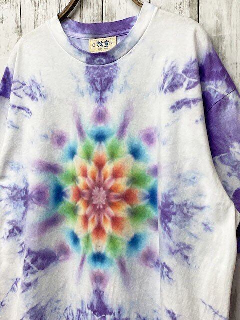 タイダイ染め Tie-dye ビッグシルエット Tシャツ メンズ Lサイズ 曼荼羅 ムラ染め パープル HD14-24