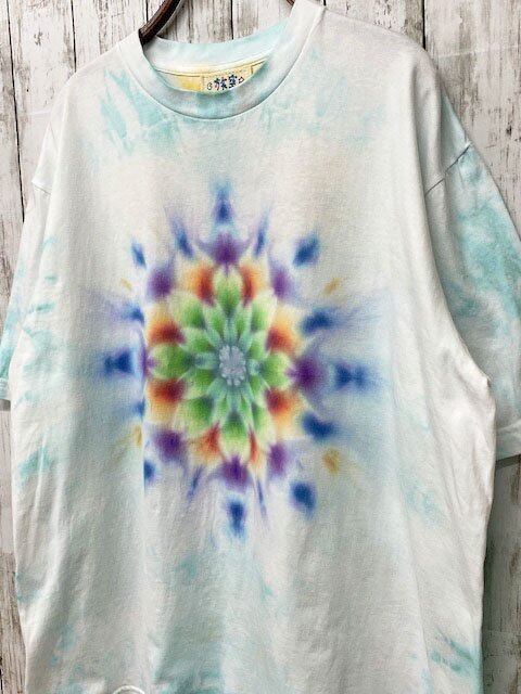 タイダイ染め Tie-dye ビッグシルエット Tシャツ メンズ Lサイズ 曼荼羅 ムラ染め ブルー HD14-25