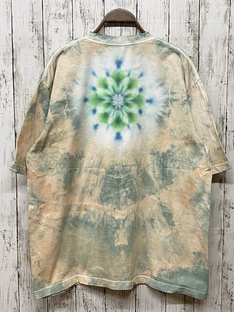 背中には深い色合いのタイダイ染め曼荼羅模様。