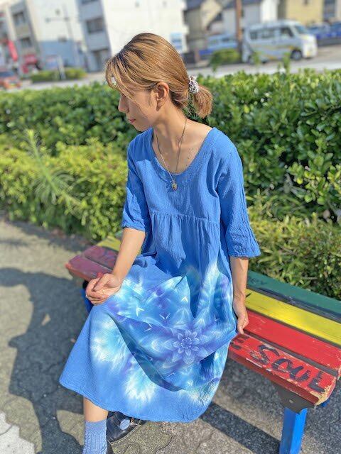 タイダイ染め Tie-dye ロングワンピース ブルービューティ 幻想的なスノーフレイク HD14-51