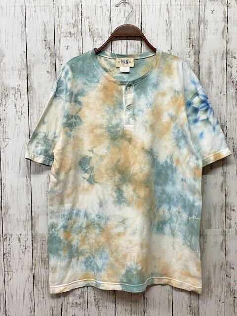 タイダイ染め Tie-dye ヘンリーネック Tシャツ Lサイズ 曼荼羅 ブルー×ベージュ HD14-57