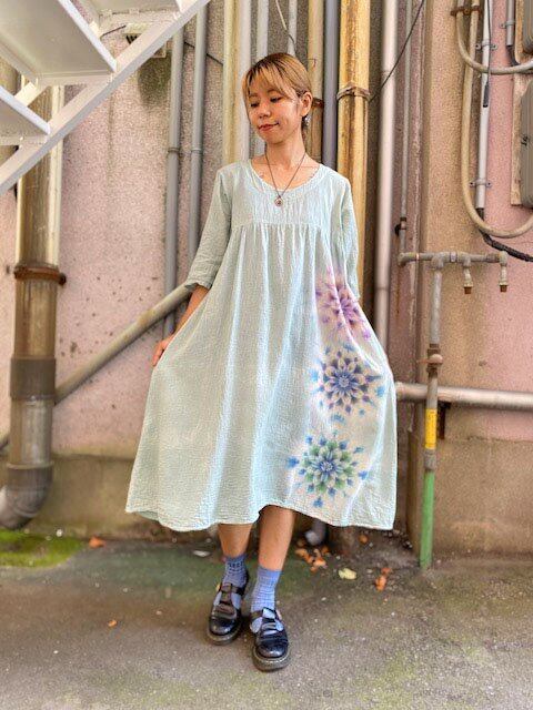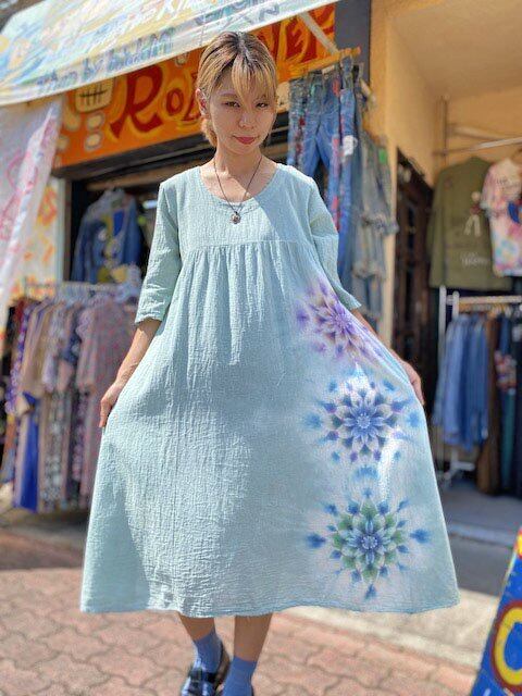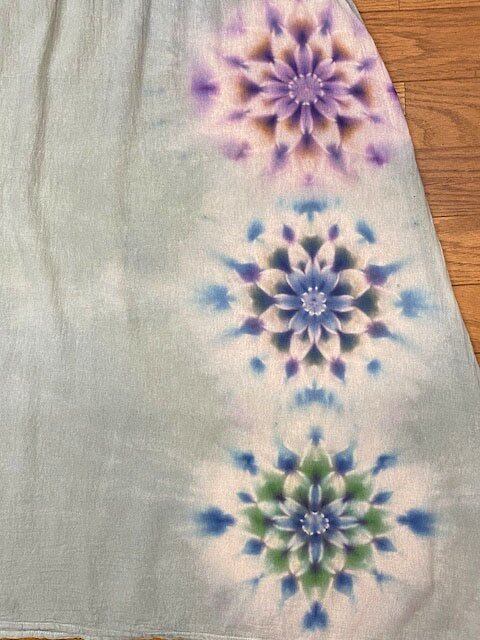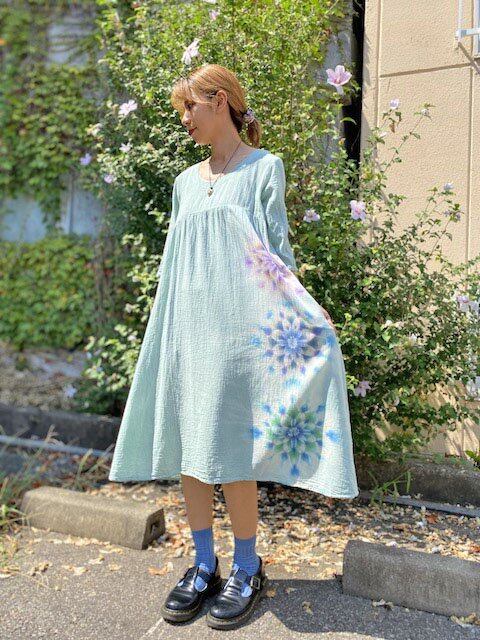 タイダイ染め Tie-dye ロングワンピース 千草色 幻想的な3連曼荼羅 HD14-58