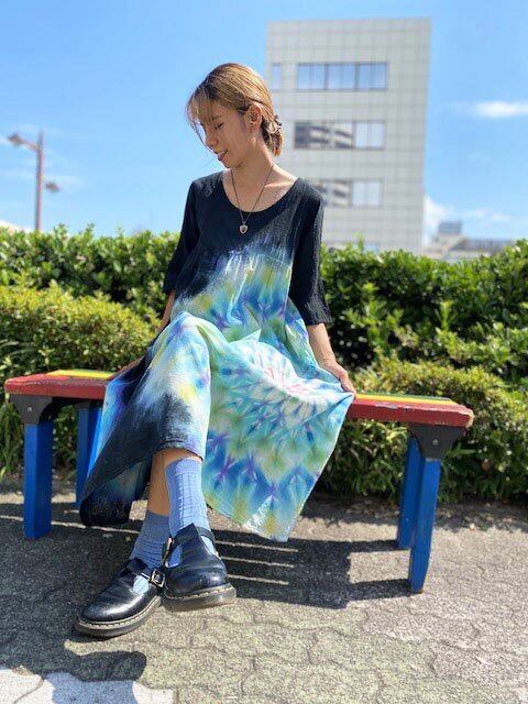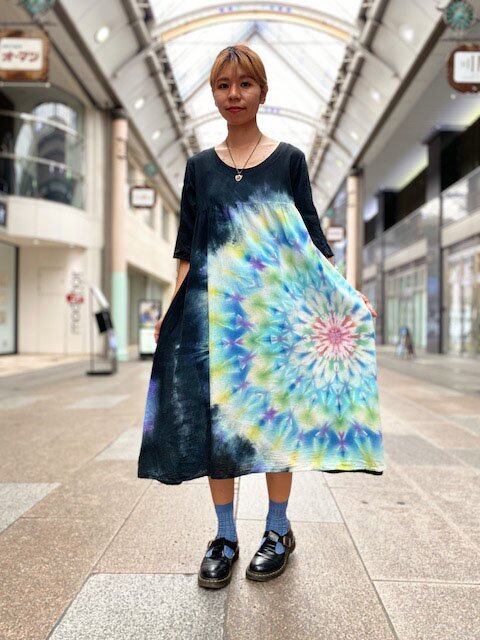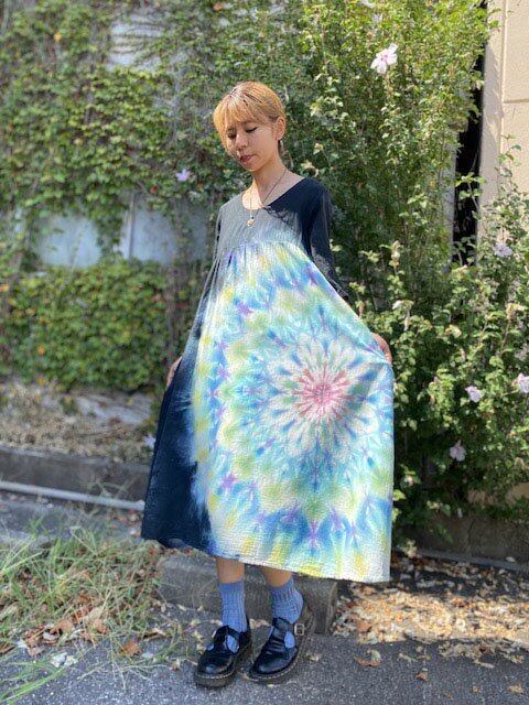 タイダイ染め Tie-dye ロングワンピース ブラックビューティ 孔雀大曼荼羅 HD14-59