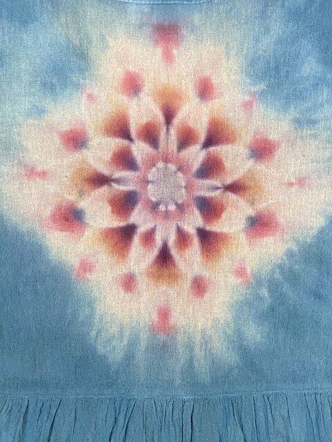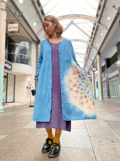 タイダイ染め Tie-dye 前開きのロングワンピース 優しい錆浅葱色に淡く幻想的な大曼荼羅 HD14-70
