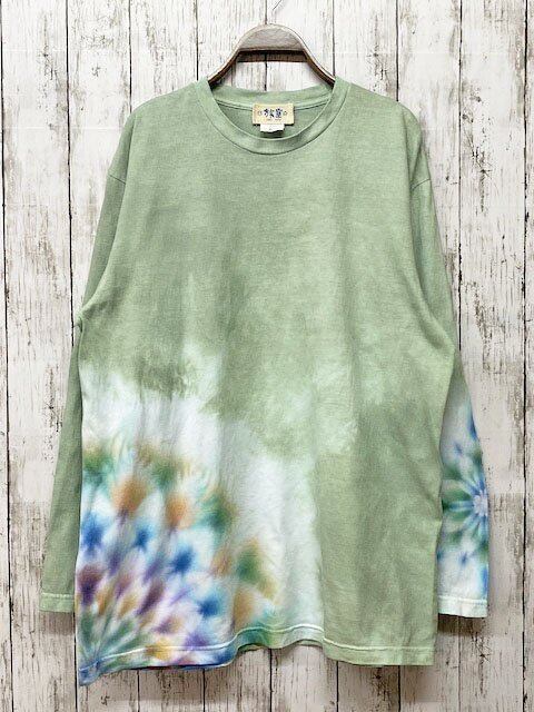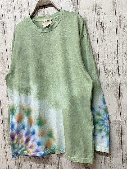 タイダイ染め Tie-dye 長袖Tシャツ XLサイズ 曼荼羅 白緑色 HD14-79