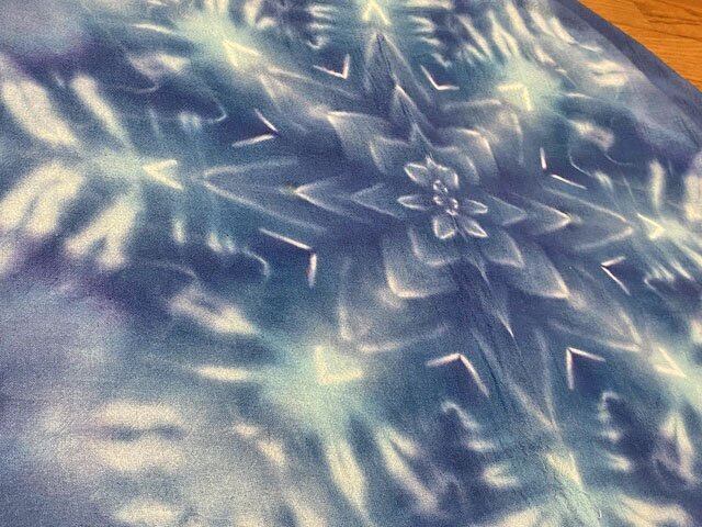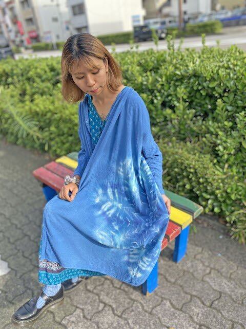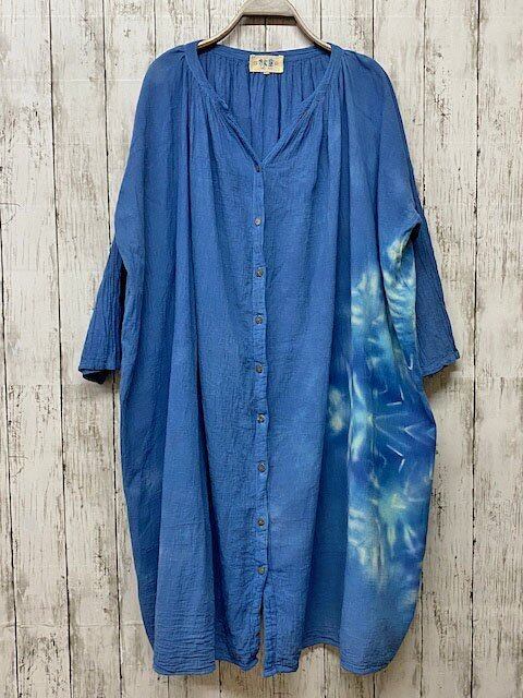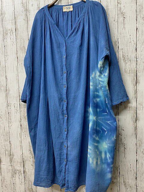 タイダイ染め Tie-dye 前開きワンピース ゆったりデザイン 優しい藍色に美しい幻想的なスノーフレイク HD14-81