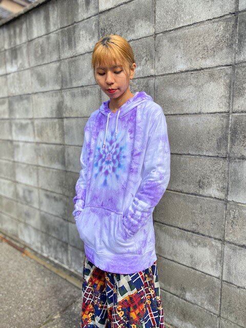 タイダイ染め Tie-dye プルオーバー フーディー曼荼羅染め メンズ XLサイズ ムラ染め パープル HD15-17