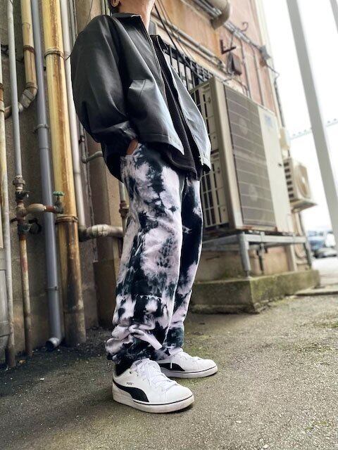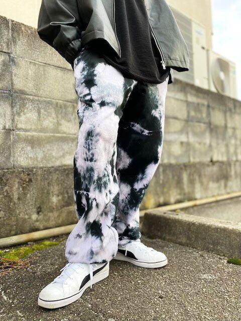 トレンドのスウェットパンツを、当店タイダイ染めアーティストが染め上げた一点物。