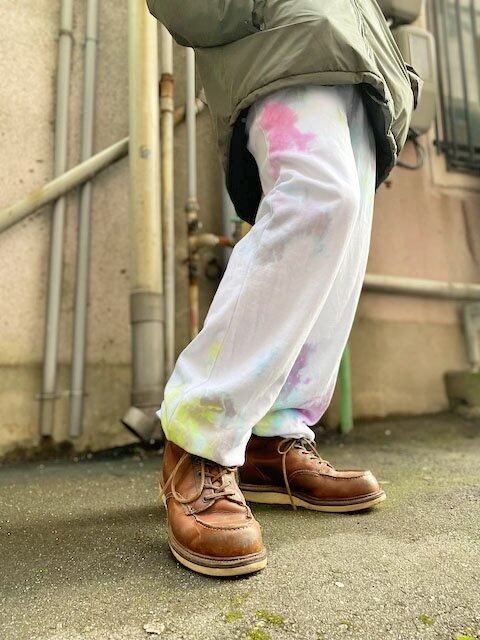 トレンドのスウェットパンツを、当店タイダイ染めアーティストが染め上げた一点物。