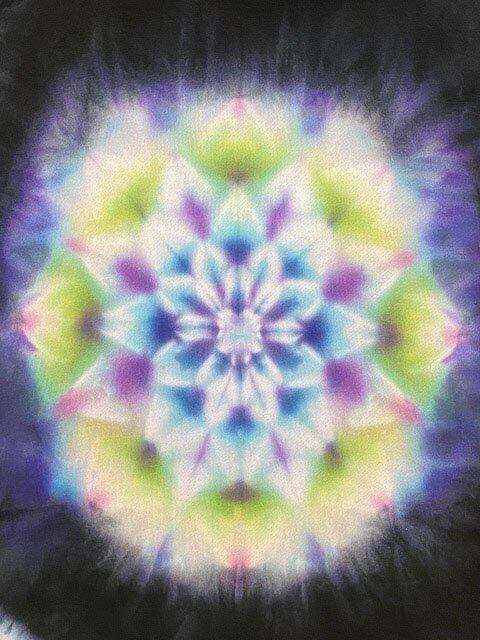 美しい銀河のような曼荼羅模様を染め上げた幻想的で、かつストリートシーンに似合うクールなイメージの作品です。