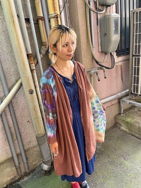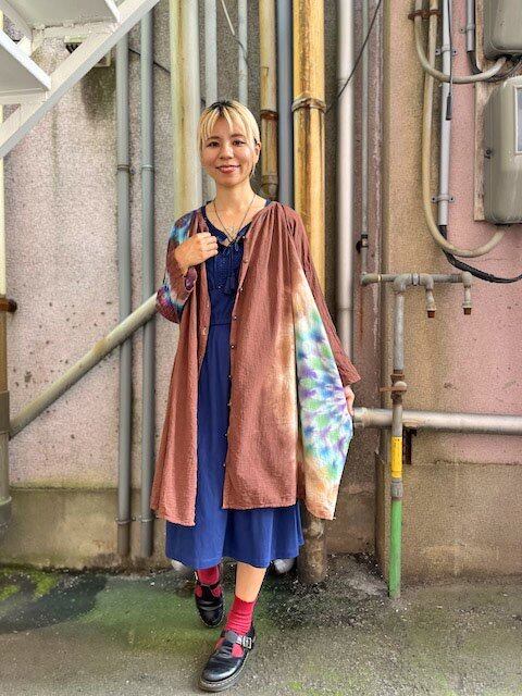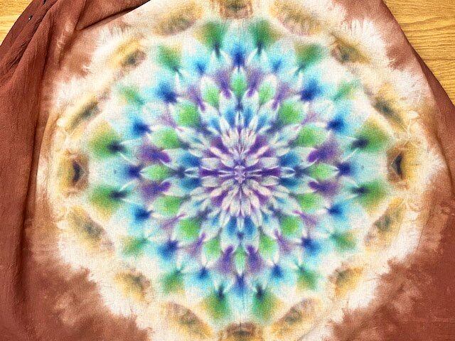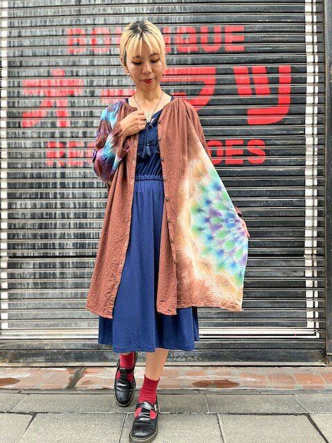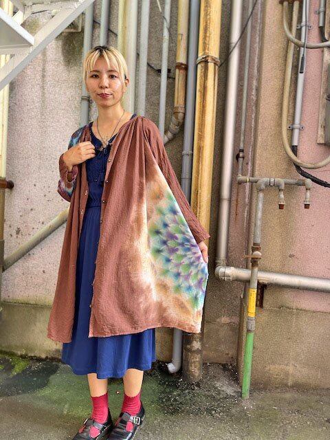 タイダイ染め Tie-dye 前開きワンピース 優しいブラウンカラーに美しく幻想的な大曼荼羅 HD17-02