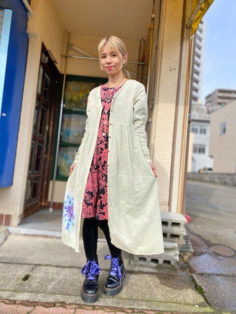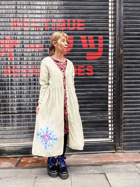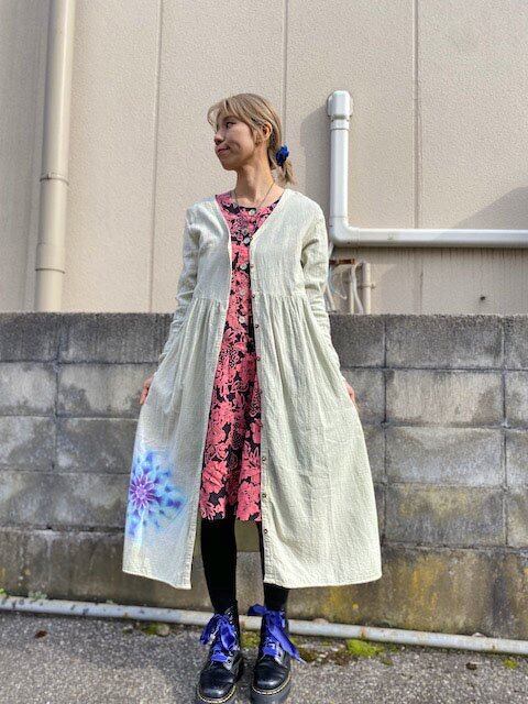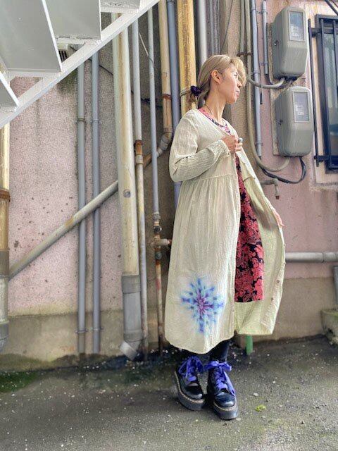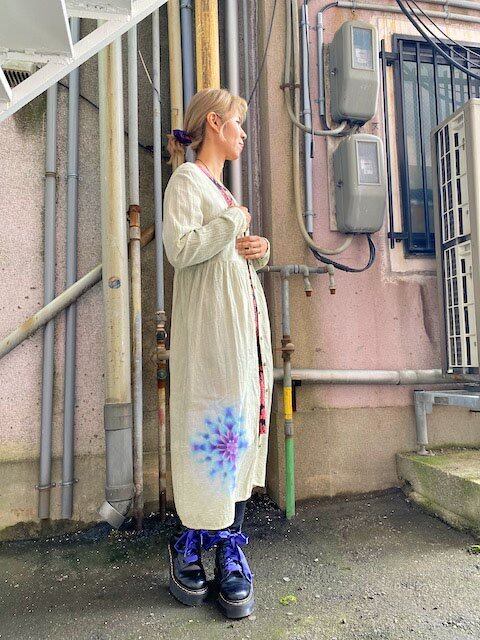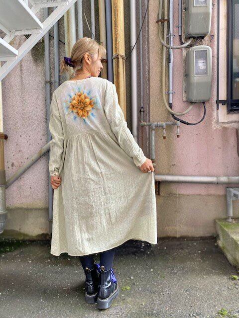 タイダイ染め Tie-dye 前開きのロングワンピース 優しい若葉色に淡く幻想的な曼荼羅 HD15-79