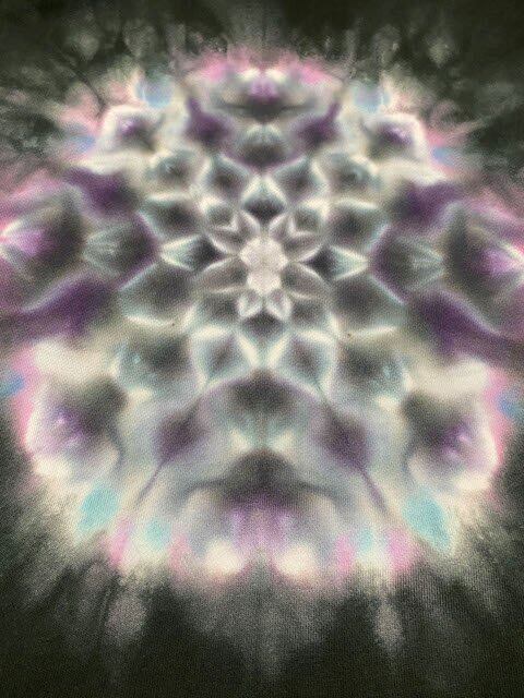 美しい銀河のような曼荼羅模様を染め上げた幻想的で、かつストリートシーンに似合うクールなイメージの作品です。
