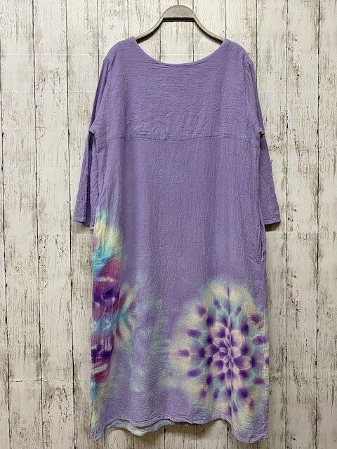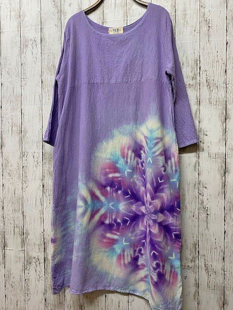 タイダイ染め Tie-dye 長袖ワンピース 優しいラベンダーに美しいスノーフレイク曼荼羅 HD16-01