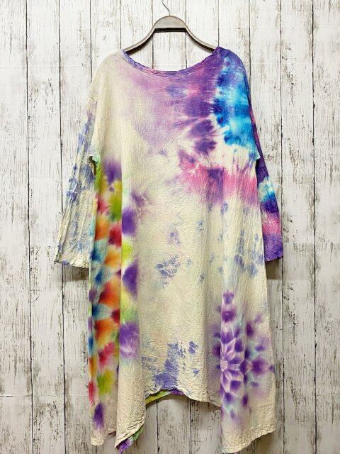 タイダイ染め Tie-dye ヘンリーネック 長袖 ワンピース 華やかな春色の幻想的な大曼荼羅 HD16-02