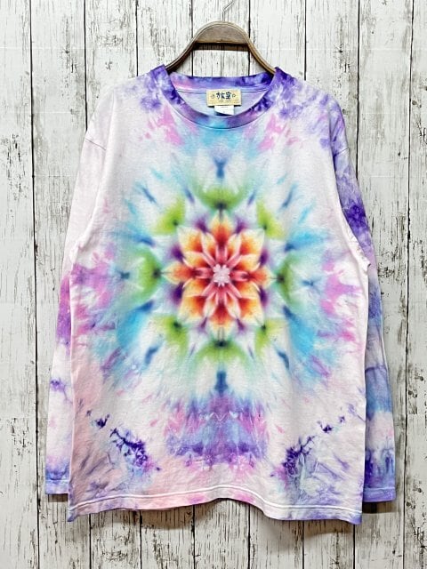 タイダイ染め Tie-dye 長袖Tシャツ Lサイズ 曼荼羅 パープル系ミックス HIPPIES DYE新作 HD16-31