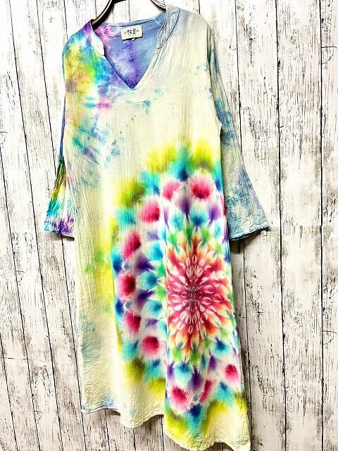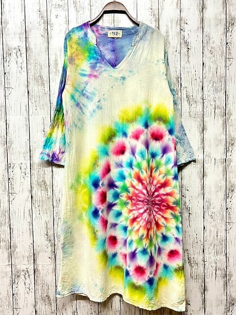 タイダイ染め Tie-dye ロングワンピース 華やかな色合いの幻想的で美しい大曼荼羅 HD16-35