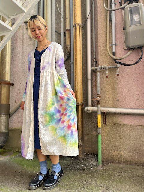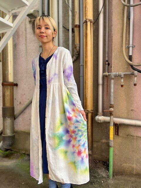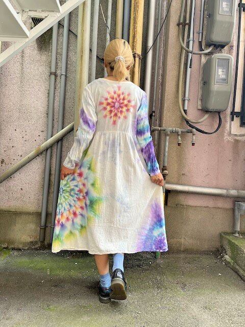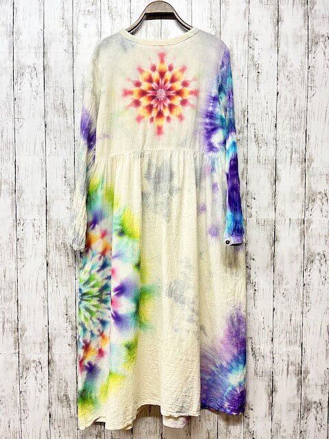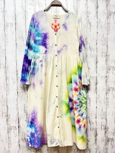 タイダイ染め Tie-dye 前開き ロングワンピース 空や風を映す湖面カラーに幻想的で華やかな大曼荼羅 HD16-60