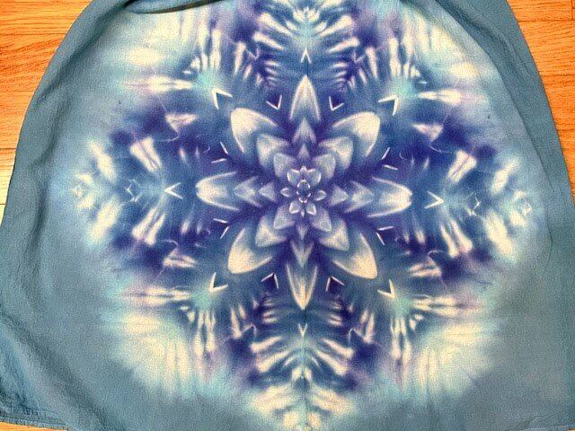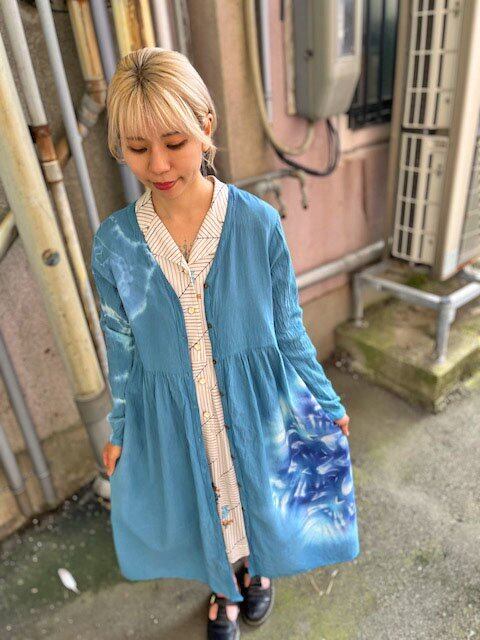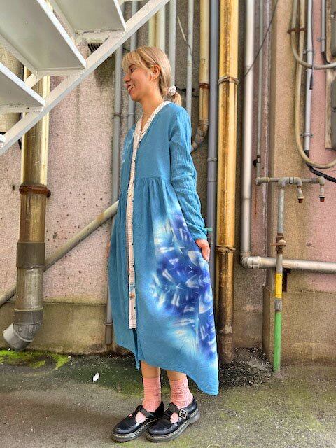 タイダイ染め Tie-dye 前開きのロングワンピース 優しいティールブルーに幻想的なスノーフレイク HD16-72