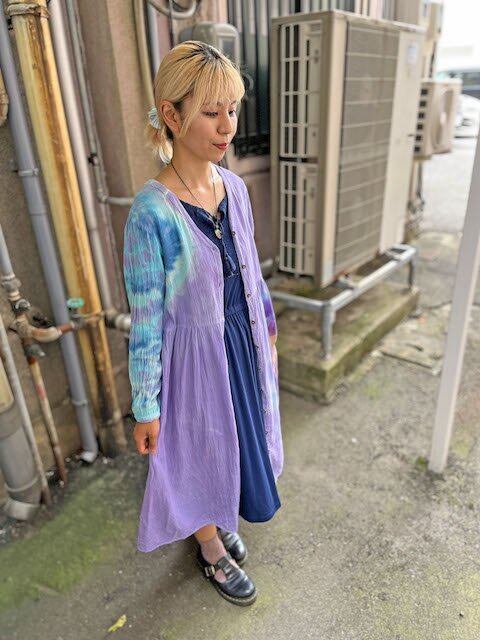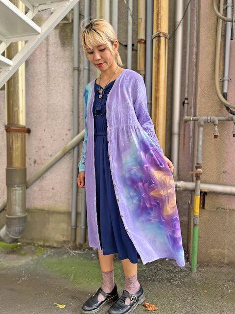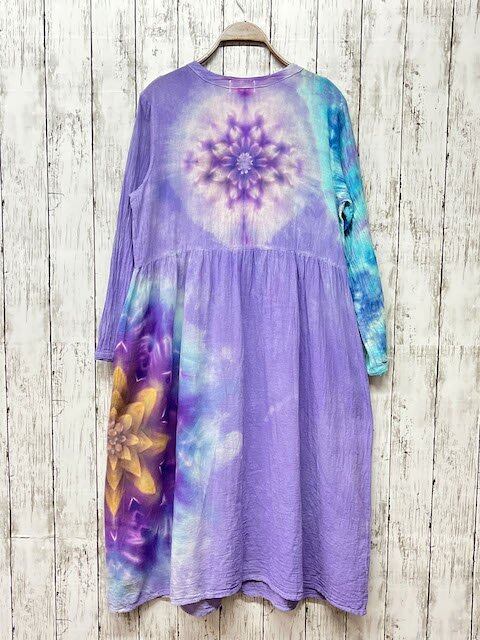 タイダイ染め Tie-dye 前開きのロングワンピース 優しいラベンダーに幻想的なスノーフレイク HD16-93
