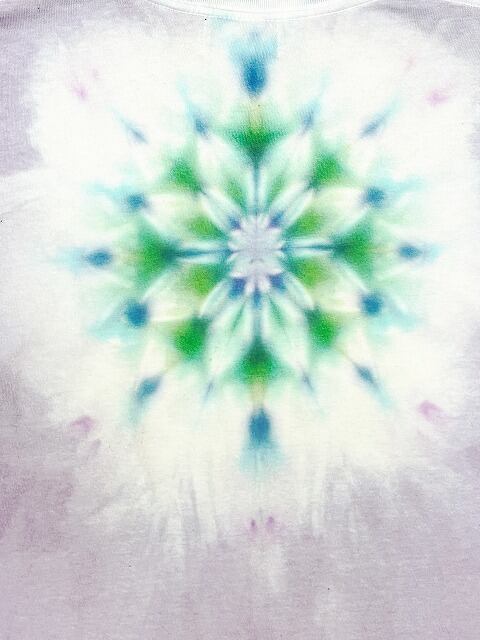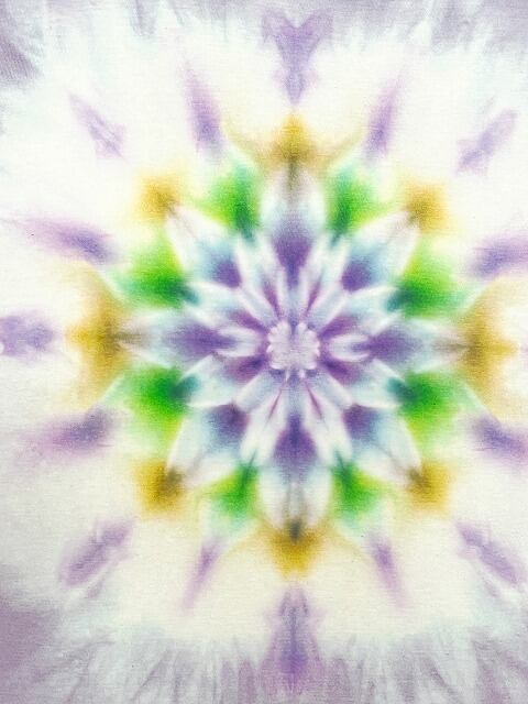 中央に幻想的な曼荼羅模様を染め上げ、全体を優しいラベンダーカラーで包み込みました。