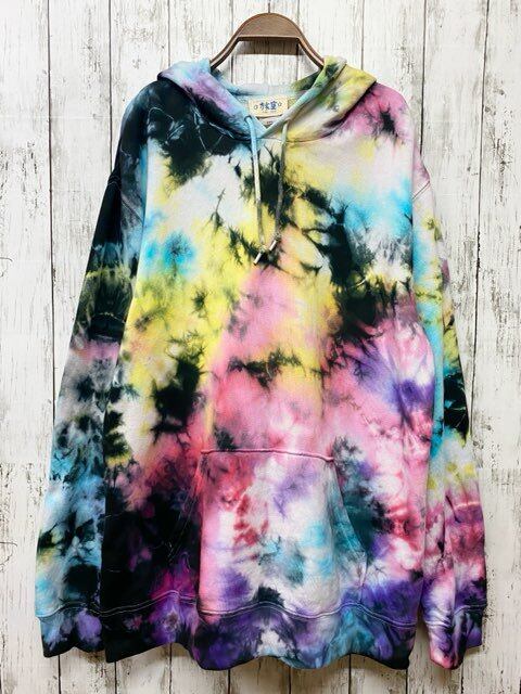 タイダイ染め Tie-dye プルオーバー フーディーメンズ XXLサイズ ブラック×カラフル HD17-24