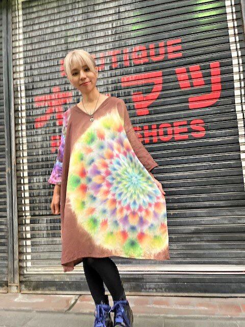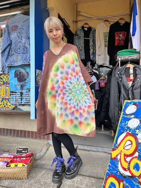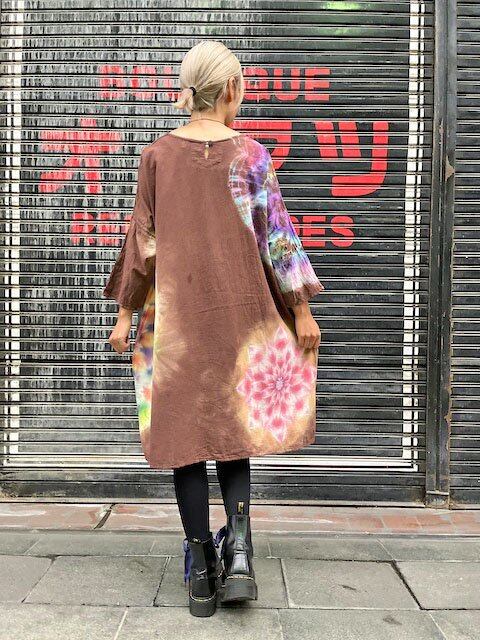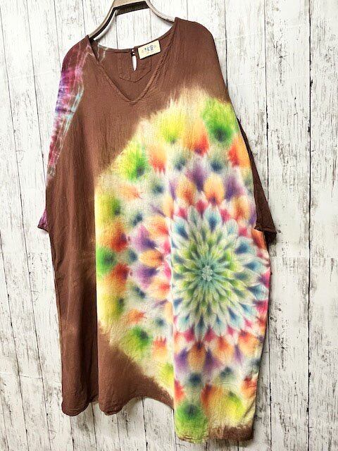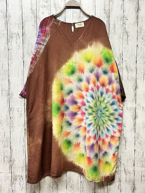 タイダイ染め Tie-dye ゆったりワンピース 深みのあるブラウンカラーに幻想的な大曼荼羅 Hippies Dye最新作 HD17-53