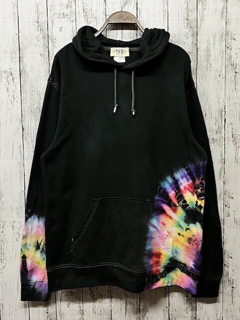 タイダイ染め Tie-dye プルオーバー フーディー XLサイズ ブラック HD17-86