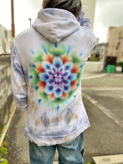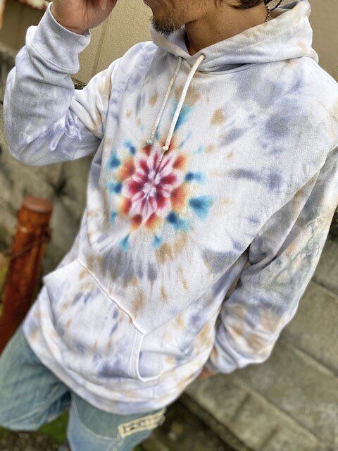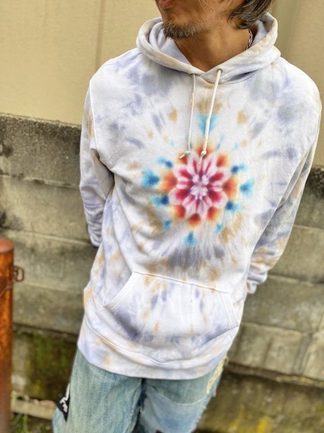 タイダイ染め Tie-dye プルオーバー フーディー曼荼羅染め XXLサイズ グレー×ベージュ Hippies Dye HD18-08