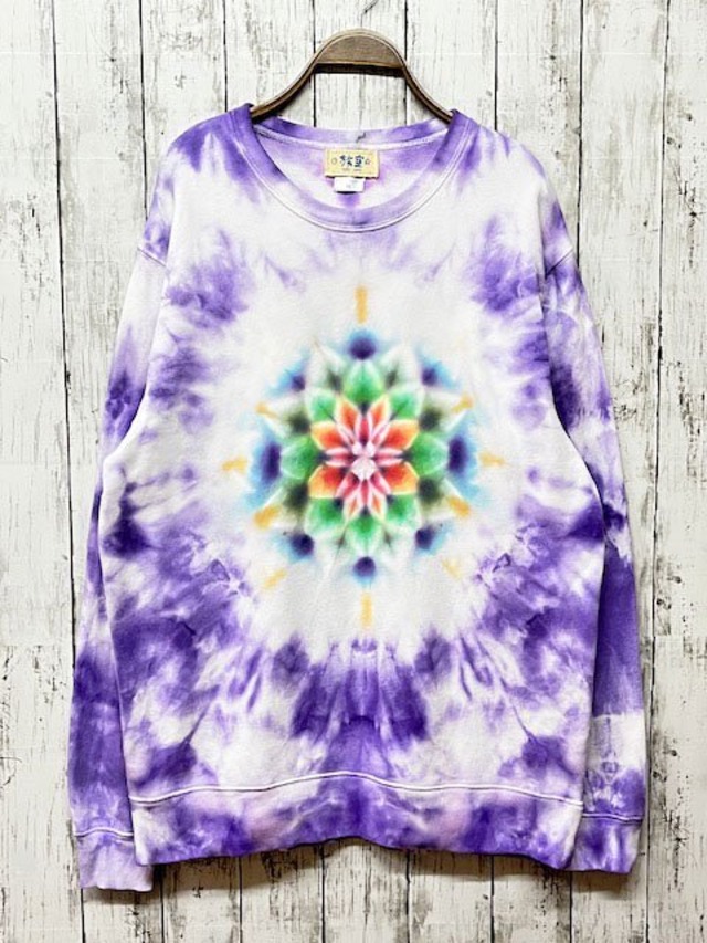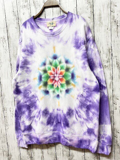 タイダイ染め Tie-dye スウェット トレーナー ムラ染め パープル 曼荼羅染め XLサイズ Hippies Dye最新作 HD18-09