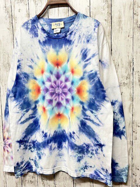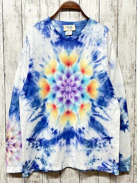 タイダイ染め Tie-dye 長袖Tシャツ Mサイズ 曼荼羅 ブルー ムラ染め HD18-26