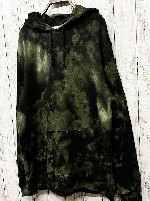 タイダイ染め Tie-dye プルオーバー フーディーメンズ XXLサイズ ブラック×カーキ HD18-28