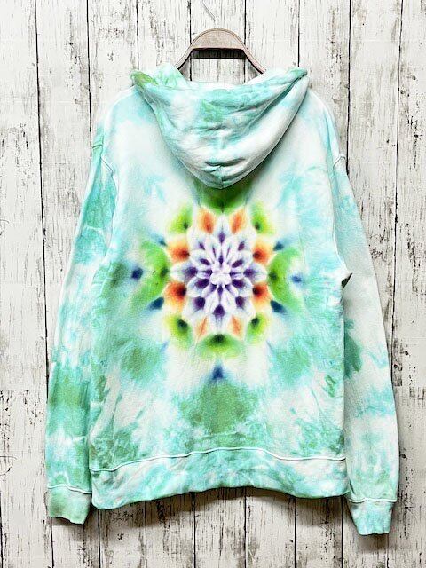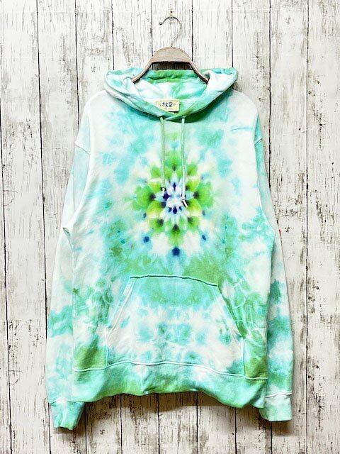 タイダイ染め Tie-dye プルオーバー パーカー メンズL ブルーグリーン Hippies Dye最新作 HD18-31